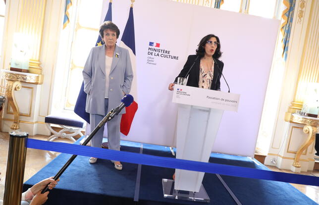 La passation de pouvoir entre l’ancienne ministre de la Culture, Roselyne Bachelot, et Rima Abdul-Malak, a eu lieu le 20 mai au ministère de la Culture, rue de Valois, à Paris.
