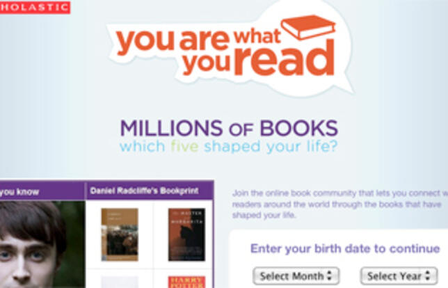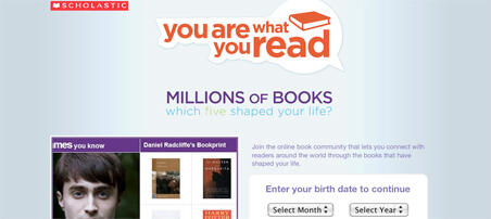 Ce jeudi 28 octobre, l'éditeur Scholastic a lancé sur internet son nouveau réseau social, YouAreWhatYouRead.com (Vous êtes ce que vous lisez, littéralement). à partir des cinq livres qui ont le plus influencé votre vie, le site construit votre profil d'utilisateur, et peut ainsi trouver d'autres lecteurs qui partagent les mêmes intérêts littéraires. Il s'agit essentiellement d'un réseau de recommandation.