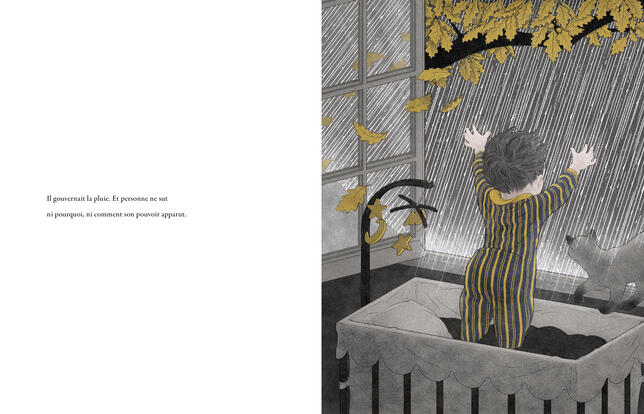 Quand un enfant naît, c'est toujours une grâce mais quand il s'agit d'un enfant qui a un don, c'est un cadeau du ciel ou des fées ! Une nuit de mauvais temps, dans son lit d'enfant, le petit Perlin « se pleut dessus ». Il découvre son pouvoir, celui de gouverner la pluie. Dans sa famille, son génie demeure longtemps inconnu. Perlin préfère parler aux nuages qu'aux enfants de son âge... Pourtant son talent finit par éclater au grand jour et son père décide d'éduquer ce fils prodige pour tirer parti de lui. Bientôt les efforts portent leurs fruits et Perlin est capable de répandre la pluie équitablement sur la planète. Plus de sécheresse, plus de famine, partout les paysages retrouvent couleur et vitalité. Perlin est vénéré et célébré en tout lieu. Toujours on le réclame et on l'acclame ! Des mots d'amour et de reconnaissance affluent des quatre coins du monde. Seulement voilà, tout a une fin, même la gloire. Peu à peu, le petit prince de la pluie se referme sur lui et sombre dans la solitude et le chagrin. Lui qui recevait des dizaines de lettres d'admiration par jour n'en reçoit plus une seule. Son nom est oublié, son exploit est devenu banal. Dur, dur de ne plus se sentir aimé. Mais voilà qu'une idée folle le taraude et lui fait quitter sa maison... Cette fable sur le pouvoir extraordinaire d'un enfant fait songer à l'univers de Miyazaki. Le trait à la fois délicat et puissant du jeune Siegfried de Turckheim aussi. Il signe ici un premier album à l'écriture musicale. Un coup de maître.