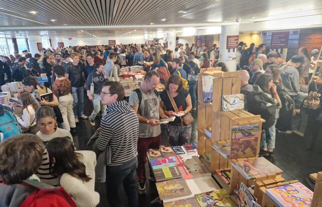 Tenue par le collectif Les librairies complices, celle-ci a accueilli de nombreuses séances de dédicaces et repose sur un « modèle vertueux dont nombre de manifestations pourraient s’inspirer ». Présent également, le directeur de Rivages Imaginaire Valentin Baillehache voit dans les Utopiales un « moment unique d’échange ». « Ici il n’y a pas d’entre-soi, les auteurs sont au contact du public et de scientifiques, c’est extrêmement fécond », poursuit-il.