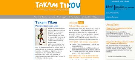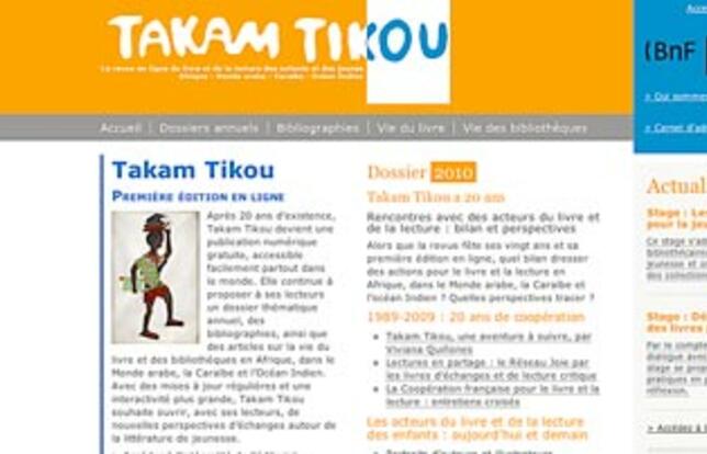 Takam Tikou, la “revue du livre et de la lecture des enfants et des jeunes en Afrique, dans le monde arabe, la Caraïbe et l'Océan indien”, jusqu'alors payante en France et diffusée gratuitement à 1 700 exemplaires dans les pays concernés grâce à la valise diplomatique, est désormais en ligne à l'adresse