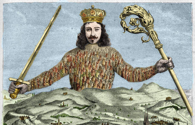 Avant le Léviathan. Le nom de Thomas Hobbes est associé à son grand œuvre de philosophie politique Léviathan (1651). À l'instar de Machiavel, le philosophe anglais est l'un des penseurs modernes de la souveraineté. Déjà citée dans De cive (1642), sa célèbre formule « guerre de tous contre tous » est reprise dans ledit magnum opus, résumant assez bien la vision hobbesienne. Une conception matérialiste et pessimiste de la nature humaine : l'homme étant un loup pour l'homme, les citoyens doivent consentir à un État puissant capable de protéger chacun des volontés particulières promptes à s'affronter dans une guerre civile dévastatrice du bien commun. Même si la loi naturelle a pour but la préservation de la vie, sans loi civile (le droit comme pierre angulaire de la stabilité), la paix, au vu de l'avidité des hommes, est loin d'être garantie. Ainsi s'établit un contrat entre les sujets et le souverain, où les premiers renoncent à leur liberté afin que le second, prince ou entité collective incarnant la souveraineté, permette le passage de l'état de nature à l'état civil et assure la sécurité de tous.