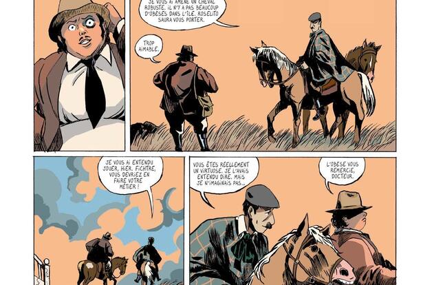Déjà aux commandes de l'attachante série de fantasy Bjorn le morphir (Casterman puis Rue de Sèvres, 2009-2018), le dessinateur Thomas Gilbert et le scénariste, romancier et documentariste belge Thomas Lavachery livrent ici une fiction policière bien ficelée. À partir d'une trame classique et éprouvée, avec ses rebondissements et ses fausses pistes, ils sont parvenus à créer un récit palpitant et moderne grâce à une narration impeccable, une toile de fond originale et intéressante, et des personnages bien campés. Avec leur inspecteur Valverde, ils ont construit un héros composite, inspiré à la fois de Sherlock Holmes - accro au laudanum, joueur de violon - et d'Hercule Poirot - son embonpoint, sa moustache, son élégance vestimentaire désuète. Cultivé, beaucoup plus fin qu'il n'en a l'air, ce limier ambigu oscille sans cesse entre léger mépris pour les autochtones - il n'hésite pas à profiter de la position de faiblesse de l'un d'entre eux pour faire avancer son enquête - et empathie - il sympathise avec des lépreux pascuans, leur joue du violon. Le dessin vivant, évocateur, et les couleurs assourdies de Thomas Gilbert traduisent parfaitement l'ambiance tendue qui règne sur l'île, où se côtoient l'opulence, à l'image des soirées chez le gouverneur, et la misère, chez les Pascuans exploités et ostracisés. Empruntant son point de départ à un fait divers rapporté par le grand-père de Thomas Lavachery, archéologue parti en expédition en 1934 sur l'île de Pâques, Caballero bueno se conclut par une résolution inattendue que l'on croirait sortie de l'imagination d'Agatha Christie. L'album ayant pour sous-titre « Une enquête de l'inspecteur Valverde », on espère retrouver ce dernier dans d'autres aventures aussi rondement menées.