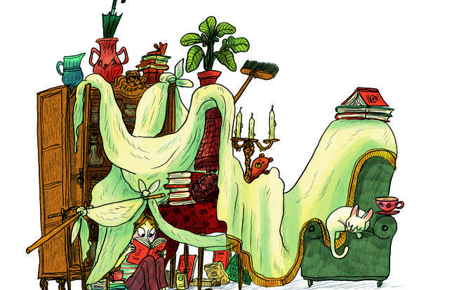 Êtes-vous plutôt poulpe qui lit deux livres en même temps ou plutôt tournesol, lové avec un bon bouquin dans une lucarne orientée vers le couchant ? Le duo Timothée de Fombelle et Benjamin Chaud n'en loupe pas une dans cet inventaire jubilatoire des différentes positions de lecture. À la louche, on répertorie deux grandes familles : les contorsionnistes qui trouvent des attitudes invraisemblables pour lire en paix et ceux qu'on pourrait qualifier de dingos prêts à tout pour finir leur bouquin. Parmi les premiers, on recense entre autres la guimauve adossée au dossier d'une chaise renversée par terre, ou le ruminant, allongé et qui ne broute pas que de l'herbe. La proximité de la couche génère un tas de positions, parmi lesquelles la descente de lit, la prière, le toboggan, la serpillière. Le spéléologue, lui, n'hésite pas à se blottir sous un meuble avec sa frontale. La valise se réfugie dans le coffre d'une voiture en route pour les vacances.