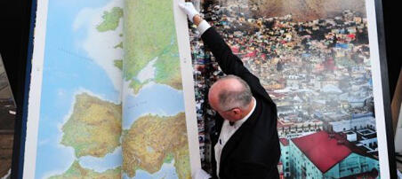 à la Foire de Francfort, un éditeur australien, Millennium House Australia, a présenté mercredi 6 octobre un atlas gigantesque qui serait le plus grand volume jamais imprimé.