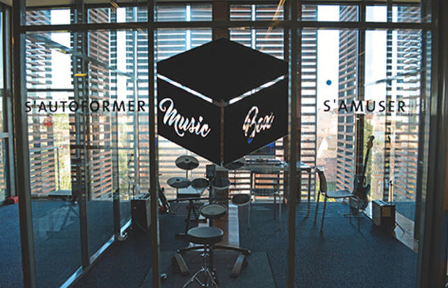 La médiathèque José-Cabanis, à Toulouse, inaugure le 22 octobre sa "Music box". Installé dans le pôle musique, cet espace insonorisé de 12 m2 équipé d’une batterie numérique, d’une guitare électrique et d’une guitare basse avec ampli, d’un petit fonds de méthodes sur DVD ainsi que d’un poste informatique pourvu d’un logiciel de musique assistée par ordinateur, permettra aux utilisateurs de jouer, de répéter, de composer et de s’enregistrer.