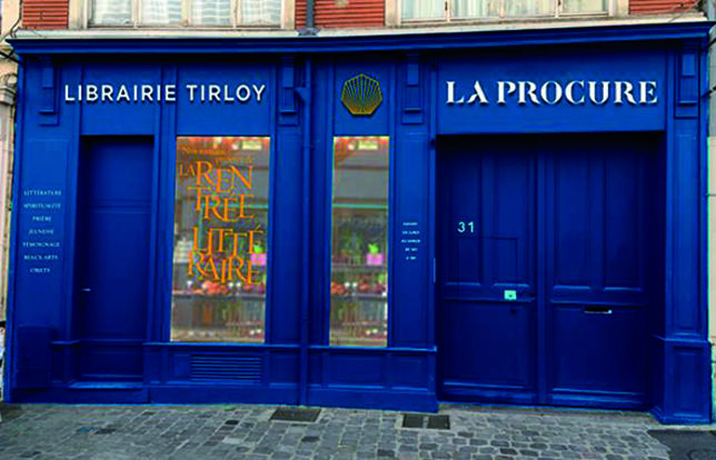"La Procure s’inscrit dans la continuité de Tirloy", annonce Bénédicte Férot, libraire pendant dix ans chez Tirloy et, aujourd’hui, directrice de la nouvelle Procure de Lille. Le 13 octobre, soit cinq mois à peine après la fermeture de la librairie historique lilloise (1), l’enseigne nationale La Procure ouvre dans la ville, à moins de 300 mètres de distance de Tirloy, au 31, rue Basse, un magasin de 150 m2 à vocation généraliste avec une forte dimension religieuse. Franchisé, le nouvel établissement, qui affichera sur sa jolie façade bleue les deux noms, La Procure et Tirloy, proposera à son ouverture 5 000 références et emploiera une équipe de quatre libraires dont Bénédicte Férot, qui connaît bien le paysage local pour avoir travaillé au Furet du nord pendant vingt ans avant de rejoindre Tirloy. Toutefois, c’est sous l’impulsion de Céline Guillaume, présidente du conseil d’administration de La Procure et gérante de la librairie franchisée du même nom à Tournai en Belgique, que le nouveau point de vente ouvre ses portes, redonnant à l’enseigne son ancrage dans le nord, presque cent vingt ans après l’ouverture à Arras, par l’abbé Delépine, de la première Procure, disparue depuis.