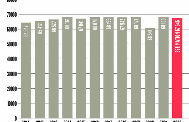 À 67 646 nouveautés et nouvelles éditions (-0,8 %) d'après nos données provisoires Livres Hebdo/Electre Data Services, la production de livres retrouve la moyenne des dix dernières années, après une chute en 2020 (-11,2 %).
