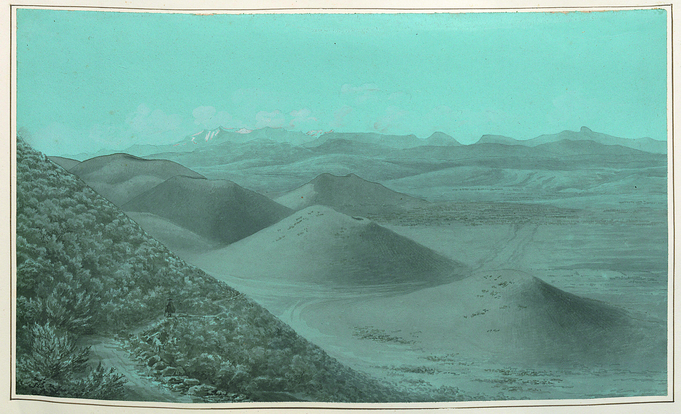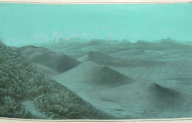 Petits volcans éteints au pied du Puy-de-Dôme, au fond les Monts d'or. L'un des 72 dessins réalisés en 1821 par le peintre Etienne-Jean Delécluze lors de son voyage en Auvergne.  - Photo JEAN-ÉTIENNE DELÉCLUZE (1781-1863)/UCA