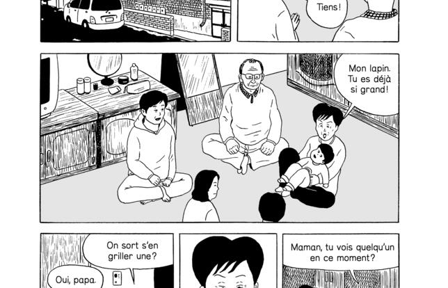 Ainsi va la vie de cette femme perpétuellement angoissée par l'avenir de ses enfants et par le sien, elle qui ne possède rien à part son vieil appartement. C'est là que le portrait intime résonne en une fresque sociale sur la vie des femmes célibataires en Corée du Sud, perpétuelles victimes d'une société bien plus traditionaliste que la modernité clinquante du pays affichée sur la scène internationale ne le laisse croire. Un patriarcat qui ne dit pas son nom, où l'espoir résiderait dans un mariage avec un homme fortuné ou, à défaut, dans l'entretien par un gentleman prévenant. « Les femmes riches achètent les beaux gosses avec leur argent. Les femmes sans argent se font voler leur amour et se font plaquer », résume, amère, So-yeon. Les scènes, tantôt trash, tantôt touchantes, sont dessinées d'un trait raide et sans fioritures. Et l'on observe, avec une compassion teintée d'une envie de les pousser à prendre leur destin en main, ces dames rêvant de jours meilleurs et apaisés, en recherche perpétuelle d'un peu de tendresse et de soutien moral.