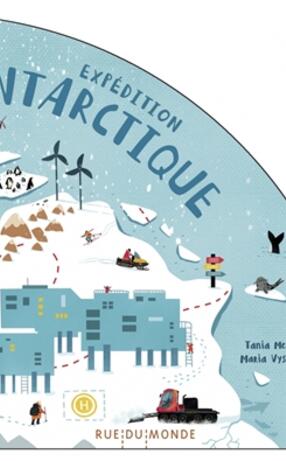 Documentaire jeunesse sur le pôle Sud, présentant la faune, l'impact du réchauffement climatique, le déroulement des expéditions scientifiques ainsi que la réglementation particulière des territoires de l'Antarctique. Quatre doubles pages se déploient pour former un cercle. ©Electre 2022