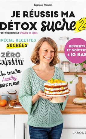 La créatrice du compte Instagram @0sucre_et_igbas propose quarante recettes à IG (index glycémique) bas à base d'aliments complets et peu transformés : gâteaux, crèmes et desserts glacés, recettes pour les fêtes, entre autres. Elles sont précédées d'explications, de témoignages ou d'astuces pour bien comprendre ce qu'est l'alimentation à IG bas. ©Electre 2023