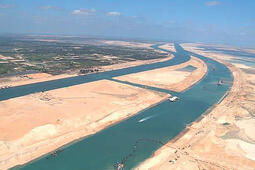 L'histoire du canal de Suez depuis les premiers projets aux alentours de 2000 av. J.-C. jusqu'a ses travaux d'extension au XXIe siècle, en passant par son inauguration en 1869 ou sa nationalisation par Nasser en 1956. ©Electre 2018
