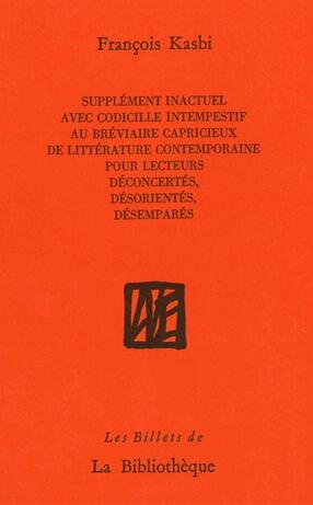 Supplément inactuel avec codicille intempestif au Bréviaire capricieux de littérature contemporaine pour lecteurs déconcertés, désorientés, désemparés